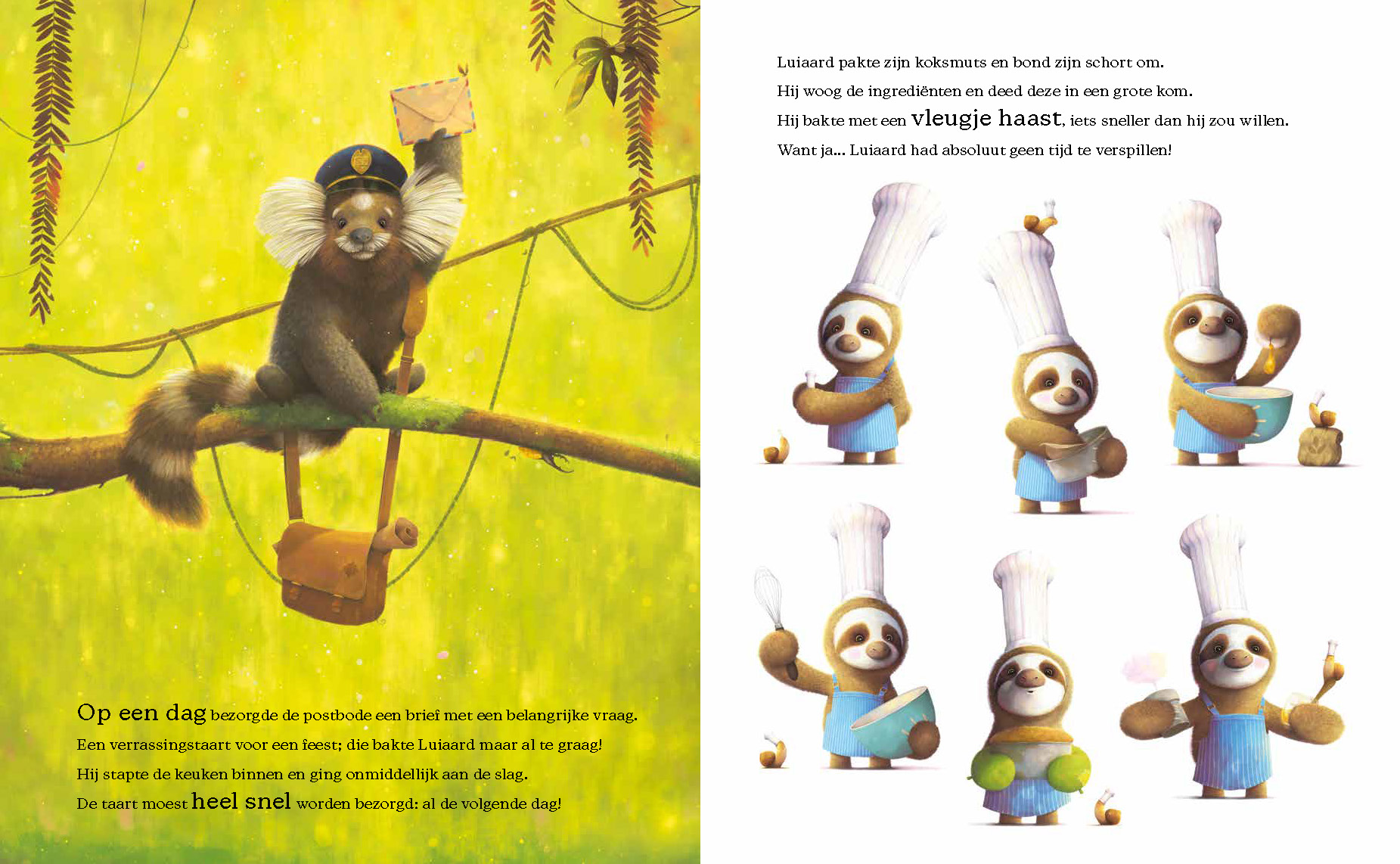 Luiaard heeft zijn eigen bakkerij geopend, zijn taarten zijn een daverend succes! Op een dag staat hij voor een flinke uitdaging: iemand heeft een verrassingstaart besteld, die héél ver weg bezorgd moet worden… en dat al de volgende dag! Lukt het Luiaard om dit voor elkaar te krijgen, of komt er hulp uit onverwachte hoek?